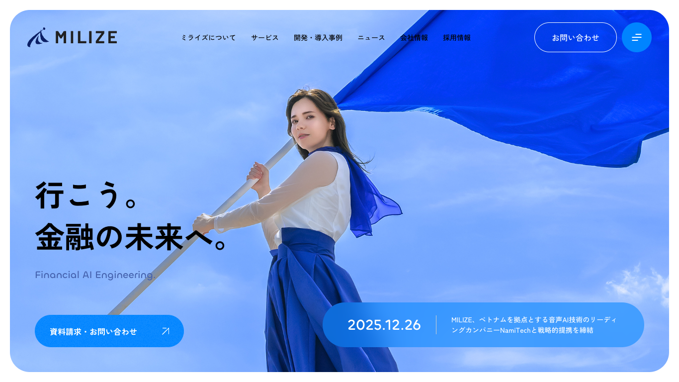 株式会社MILIZEはAIエンジニアや金融DX人材がビッグデータを活用し、生成AIや金融工学を駆使した金融サービスやプラットフォームを提供しています。